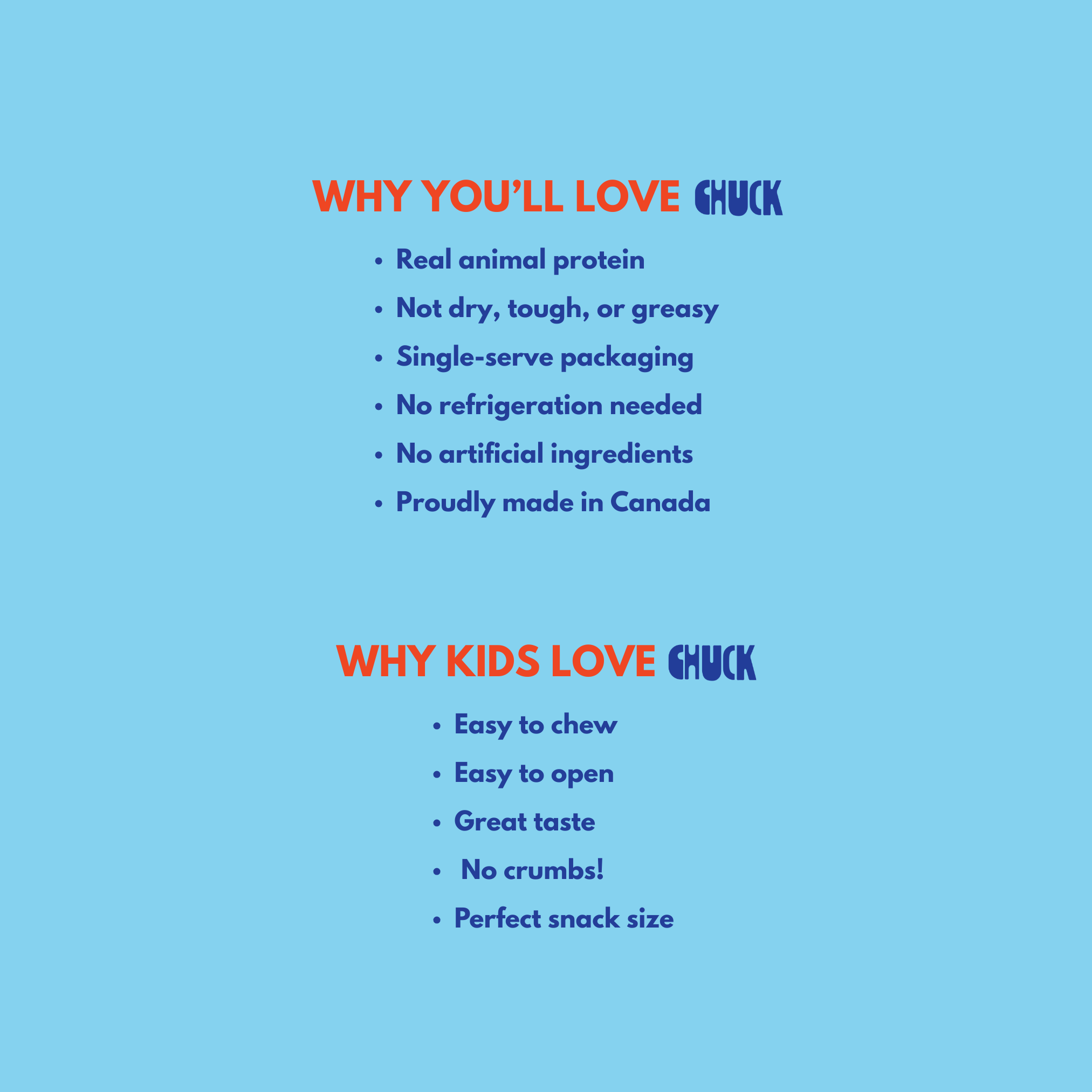 Absolutely not! Chuck works for the whole family. We talk about kids a lot because parents are tired of snacks that lack nutrients and tough jerky just isn’t kid friendly. But adults love it because it's a classic, clean, and satisfying snack.